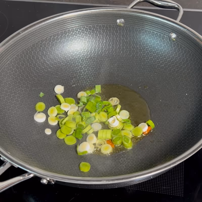 - Build the Sauce: In a large skillet, heat 2 tablespoons of olive oil over medium heat. Add the dried chili (if using) and the chopped spring garlic.