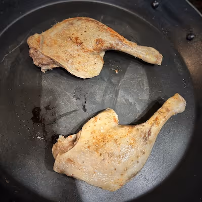 - After 2 hours, take the Dutch oven out, turn the legs skin side up, put the lid back, and return them for another hour in the oven.