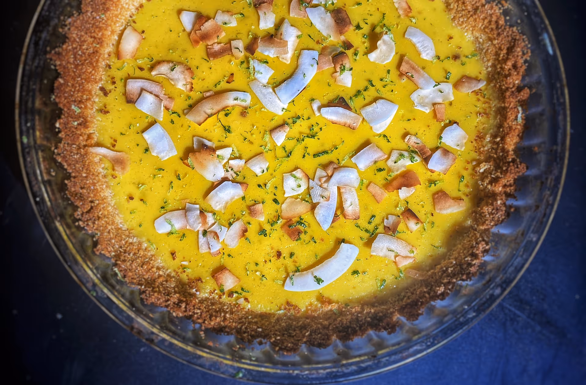 If you are looking for the authentic key lime pie recipe, well, this is not the one. The original dish appeared in the '30s, and it contains no coconut. Furthermore, it can be very often served with a meringue on top.