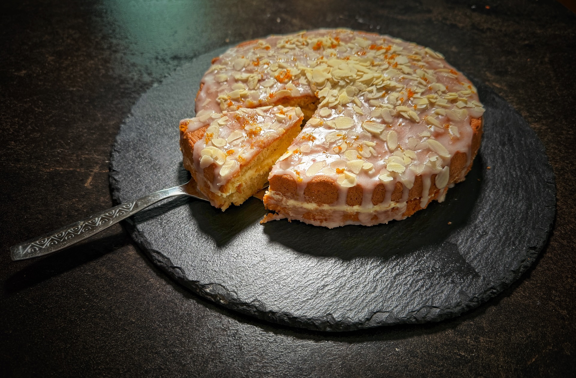 Moist orange almond cake with ginger cream and fondant. Naturally gluten-free, tender, elegant, and built for perfect texture without syrup.
