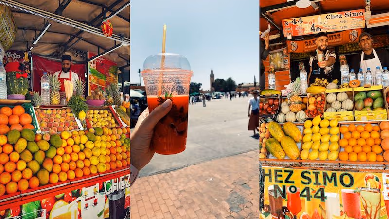 To wash everything, try the plethora of fresh fruit juices available in the Jemaa el-Fnaa market. They are a refreshing antidote to the heat and the perfect accompaniment to the food.