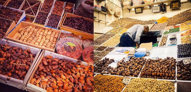Furthermore, you should not pass the nuts and dried fruit areas without trying them out.