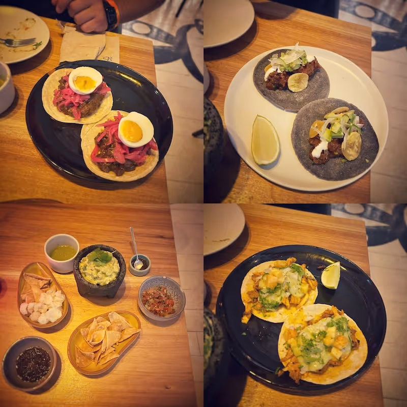 The food here is delicious. They have a great taco variety to choose from. And the best part is that you can order a little bit of everything and share. We even tried worms for the first time in our lives. Oh, and we drank the best tequila here.
