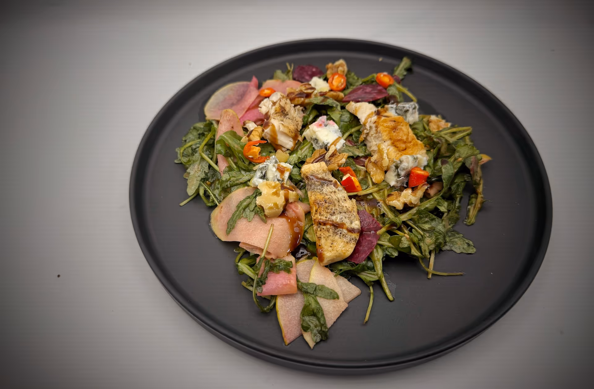 Autumn Pear Salad with Grilled Chicken, Beet & Blue Cheese