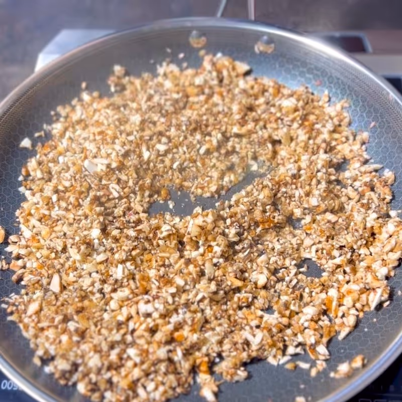 - Make the Mushroom Duxelles: In the same pan, sauté the diced mushrooms without oil, adding a pinch of salt to draw out moisture.