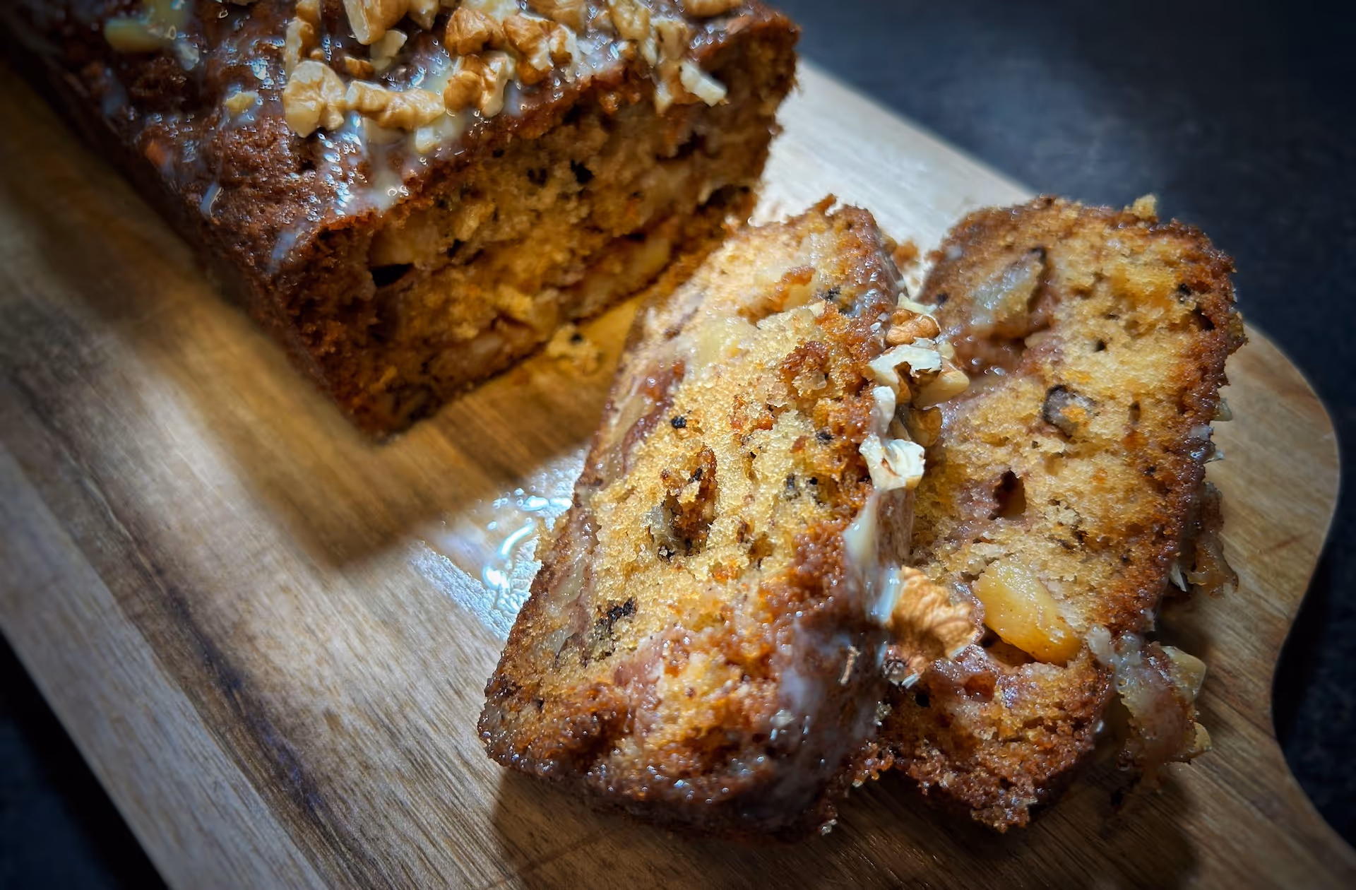 Nutritionally, this bread offers a balance of fats from the butter and mascarpone, carbohydrates from the flour and sugar, and some fiber and healthy fats from the walnuts and apples.