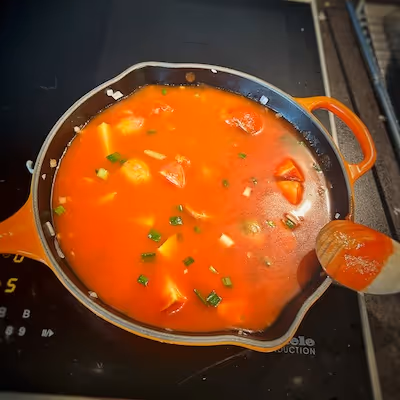 - Stir in the carrot, and after 1-2 minutes, add the potatoes, tomato puree, and water.