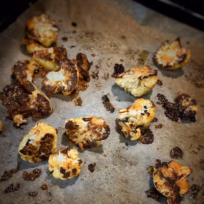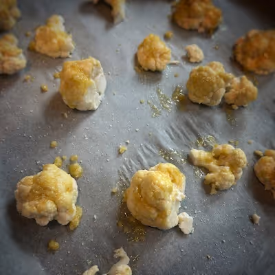 - On a baking sheet lined with parchment paper, arrange the cauliflower florets.