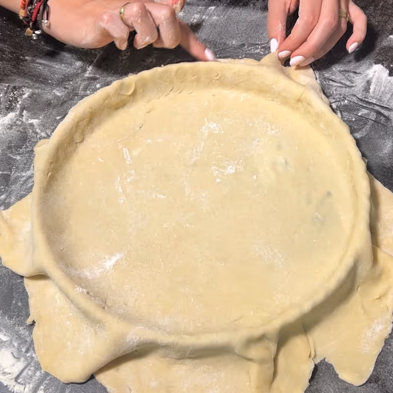 - Once chilled, roll it out to about 2–3 mm thick and lay it in a tart pan, trimming the excess edges.