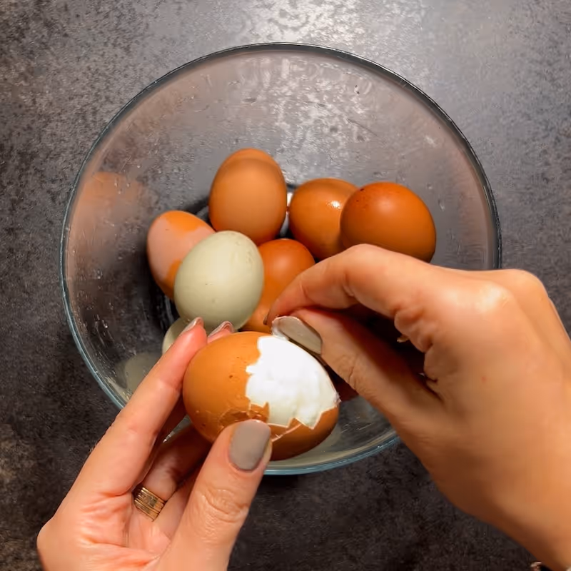 A: Boil the eggs for exactly 10 minutes once the water reaches a rolling boil. Then, transfer them to cold water to stop the cooking and make peeling easier.