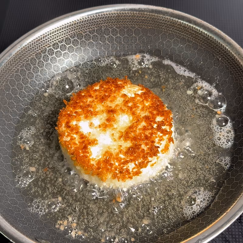 - Add the camembert and let it fry for a couple of minutes on each side. You want to obtain a beautiful golden color.