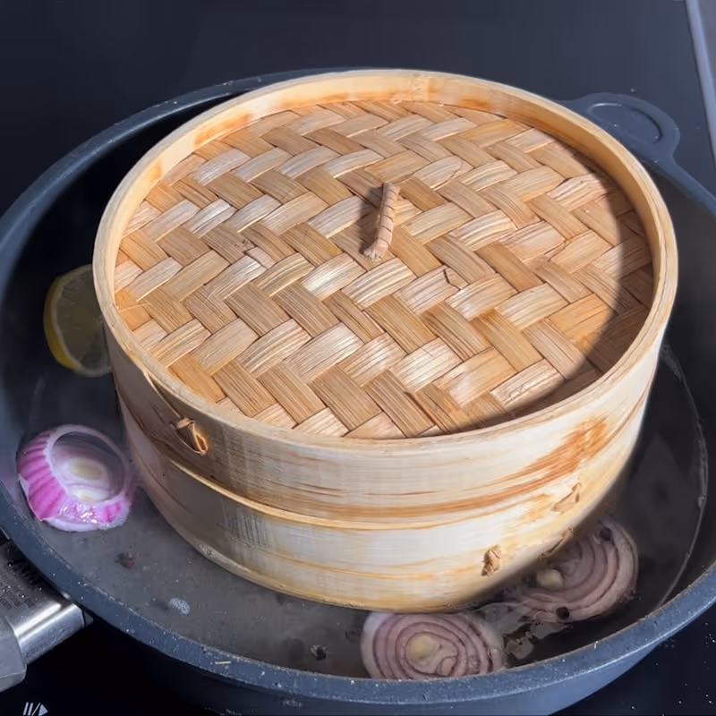 - Once the water starts boiling, steam the salmon for 8 minutes.