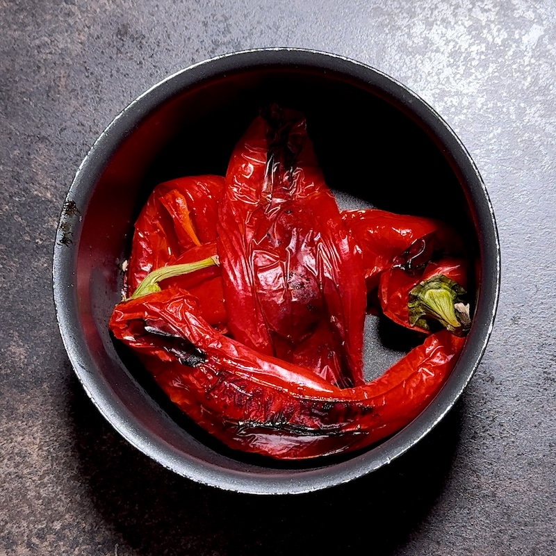 - Peel the peppers and the tomatoes.