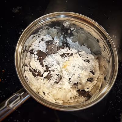 - In a separate pan, mix the dark chocolate and coconut butter and melt them carefully in the microwave or over a double boiler.