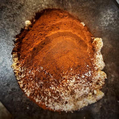 - In another bowl, mix the almond flour, cocoa powder, and desiccated coconut.