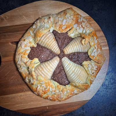 This recipe successfully combines the rustic charm of a galette with the creamy richness of frangipane, resulting in a unique dessert that's both crunchy and creamy. It's a great example of how blending different culinary traditions can yield delicious results.