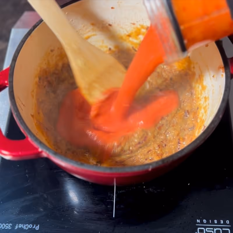 - Creating the Curry Base: Chop 4 onions, sprinkle with a pinch of salt, and caramelize in 2-3 tbsp ghee for 4-5 minutes.