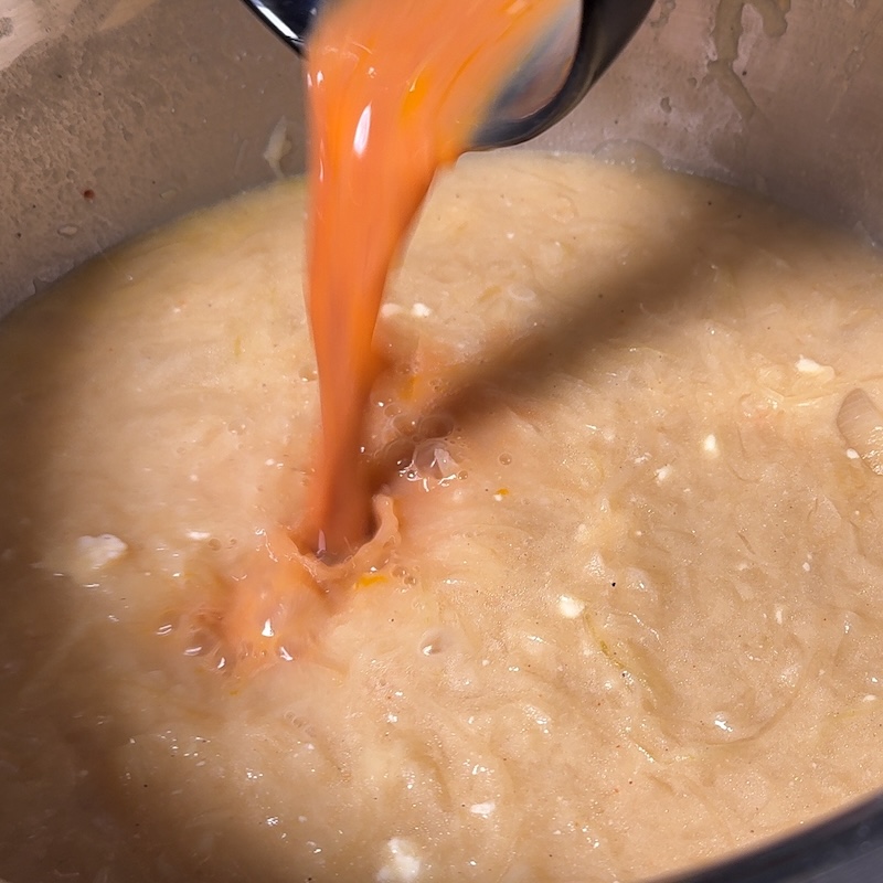 I also adjusted the alcohol balance. Instead of adding Armagnac only at the end, I split the warmth between Port and cognac in the liaison. This softens the alcohol edge and integrates it more evenly into the soup.
