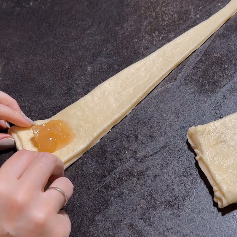 Today I want to tell you about a sweet recipe that's perfect for an indulgent snack. We're baking plush, crescent-shaped rolls—soft, cloud-light, and wonderfully aromatic—filled with jam and finished with a silky Nutella icing.