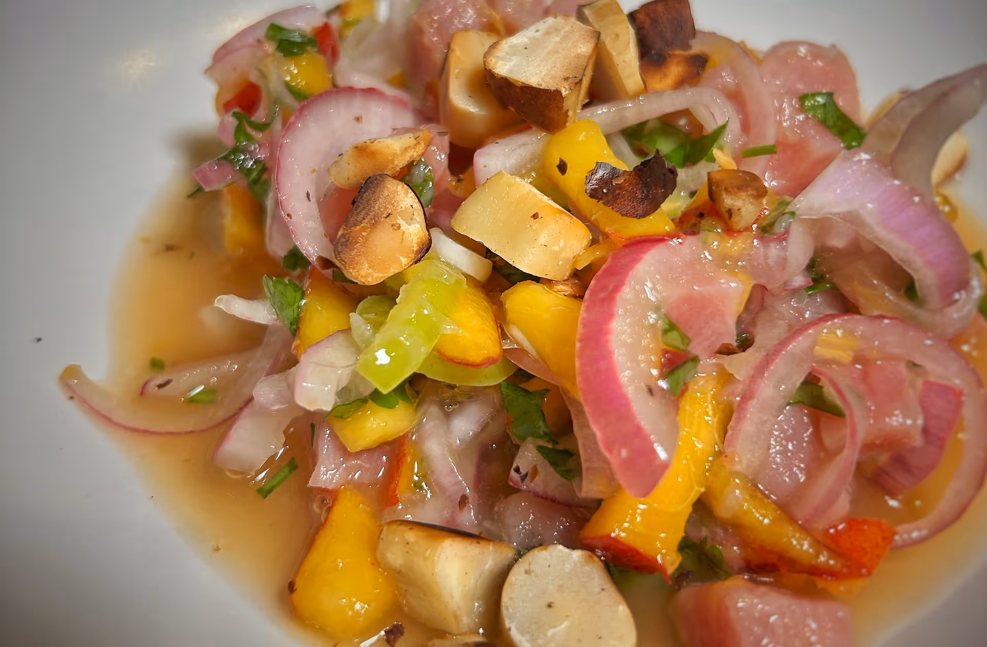 Fresh and delicious Peachy Tuna Ceviche, perfect for a hot summer day. Ready in just 20 minutes!