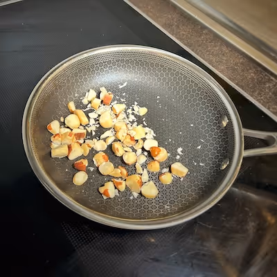 - Prepare the Nuts: Chop the Brazil nuts and toast them in a pan for 2-3 minutes until they turn golden brown.