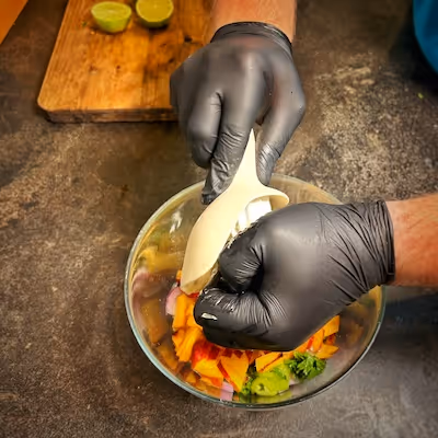- Add the Citrus: Squeeze the juice of 3 limes over the chopped ingredients in the bowl.
