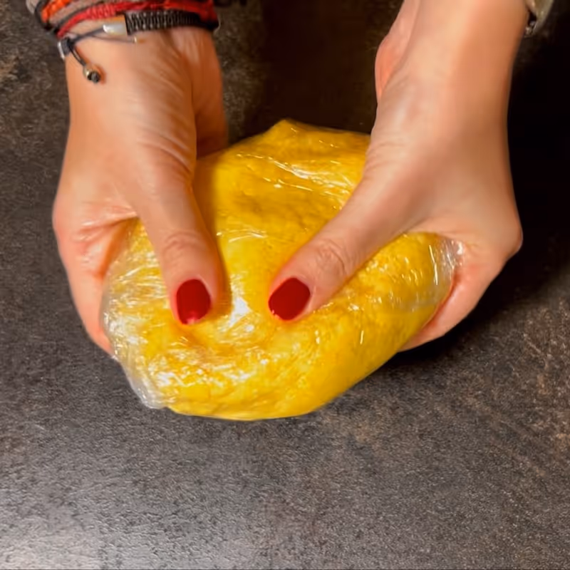 - Once you reach the right consistency, add one more teaspoon of olive oil, wrap the dough in plastic wrap, and let it rest in the fridge for at least an hour.