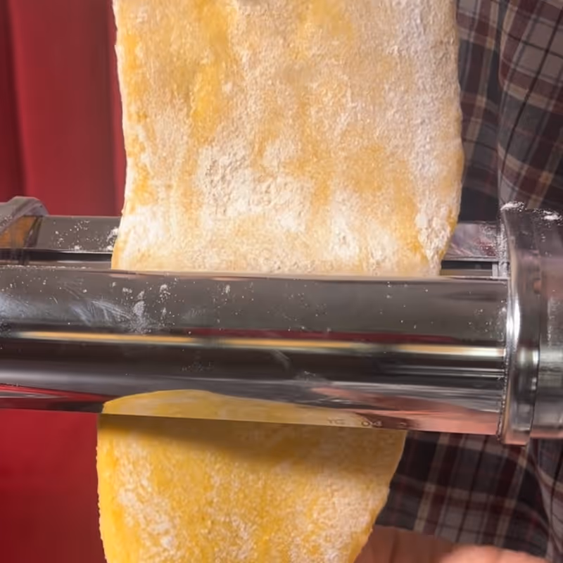- Roll out the dough on a floured surface using a rolling pin. After that, using a pasta machine, work your dough into a sheet each level at a time.