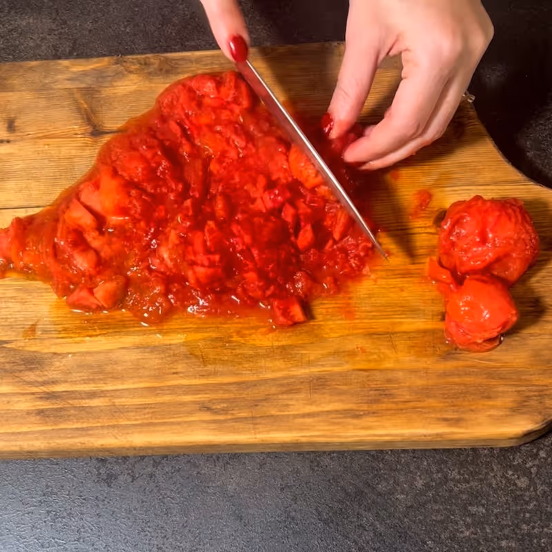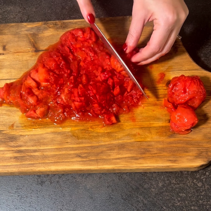 - Blanch the tomatoes in boiling water for 15–20 seconds, then transfer to an ice bath. Peel and dice.