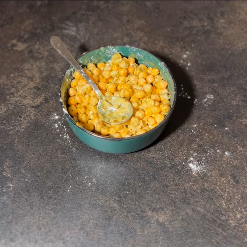 - Step 2: Prepare the Chickpeas: Drain your canned chickpeas and mix them with 1 tablespoon of cornstarch and the remaining masala oil.