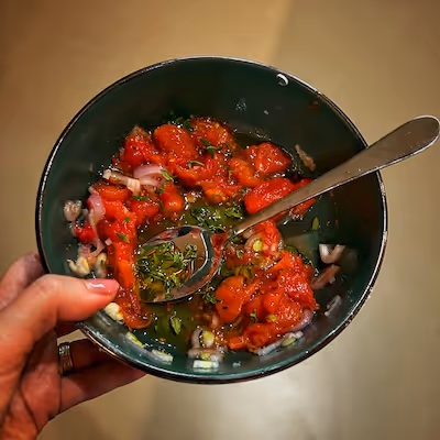 - Return to your charred tomatoes. Peel them gently. You want only to remove the skin and not the pulp.