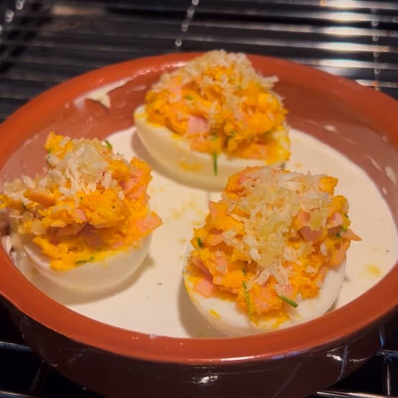 Learn how to make warm deviled eggs with creamy filling and panko topping. An easy, classic appetizer with a twist of flavor, perfect for any occasion.