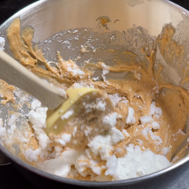 - Gently fold in the egg whites by hand—this keeps the batter fluffy.